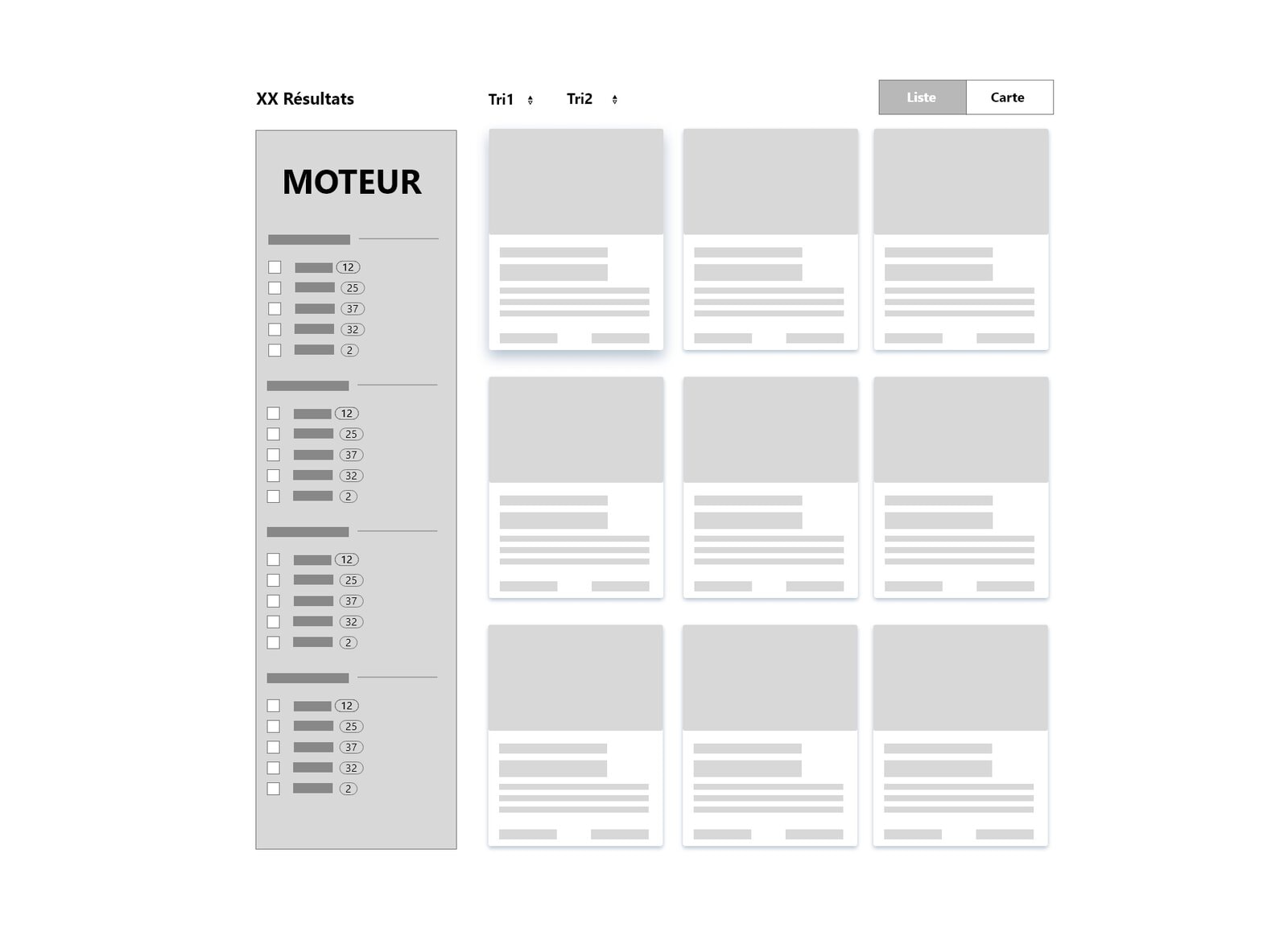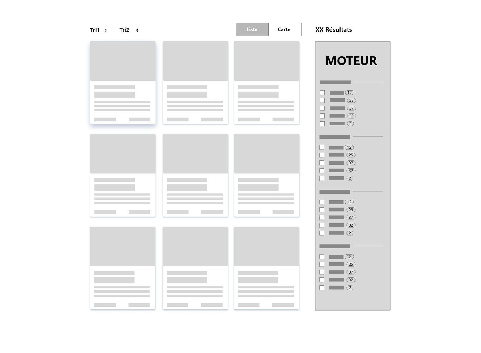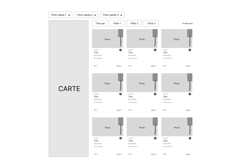 liste, fiche, composant, carte…